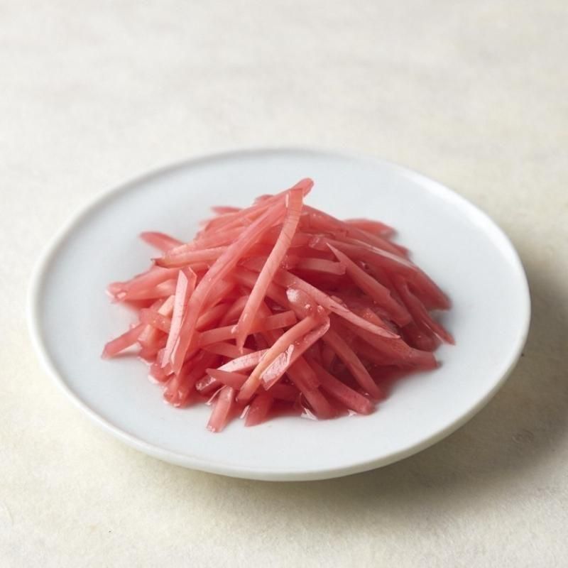 • 原材料名:しょうが(国産)、漬け原材料〔食塩、醸造酢〕 / 酸味料、野菜色素、保存料(ソルビン酸K)