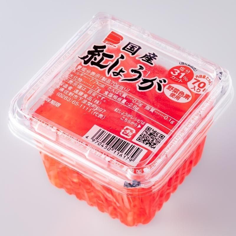 保存、開封に便利なカップ容器に詰めた紅しょうがをぜひお楽しみくださいませ。